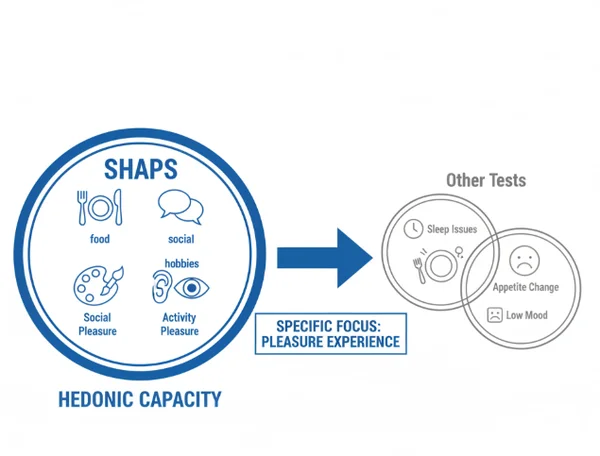 There are other tools used to measure mood, such as the Beck Depression Inventory (BDI). However, the SHAPS is unique because it focuses specifically on the "hedonic capacity," or the ability to experience pleasure. Many other tests mix in symptoms like sleep loss, appetite changes, or suicidal thoughts. While those are important, they can sometimes hide the specific issue of emotional numbness.